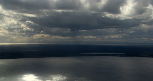 (Looking out over the shore of the Strait of Magellan towards the Andes on our approach to Punta Arenas Airport)