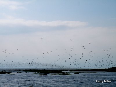 Another important feature is the proximity of safe nighttime roosts. Nighttime brings great risk to shorebirds and they choose their nightly roosting sites carefully. Most often it is on a spit of sand reaching far into the sea that is safe from the high tide. Stone Harbor Point and Brigantine Natural Area in NJ are good shorebird roosts. We suspect Egg island Point is a good nighttime roost because it is remote, safe from ground predators and safe in almost all tides.