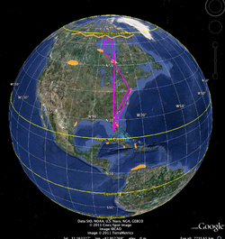 A preliminary map of the track recorded by red knot 2AX’s geolocator ( map by Ron Porter)