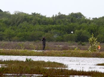 Hunter shooting a shorebird in Guadeloupe