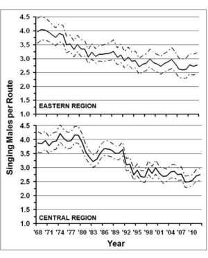 Annual indices of woodcock heard on singing ground 1969 to 2011. From USFWS report 2012