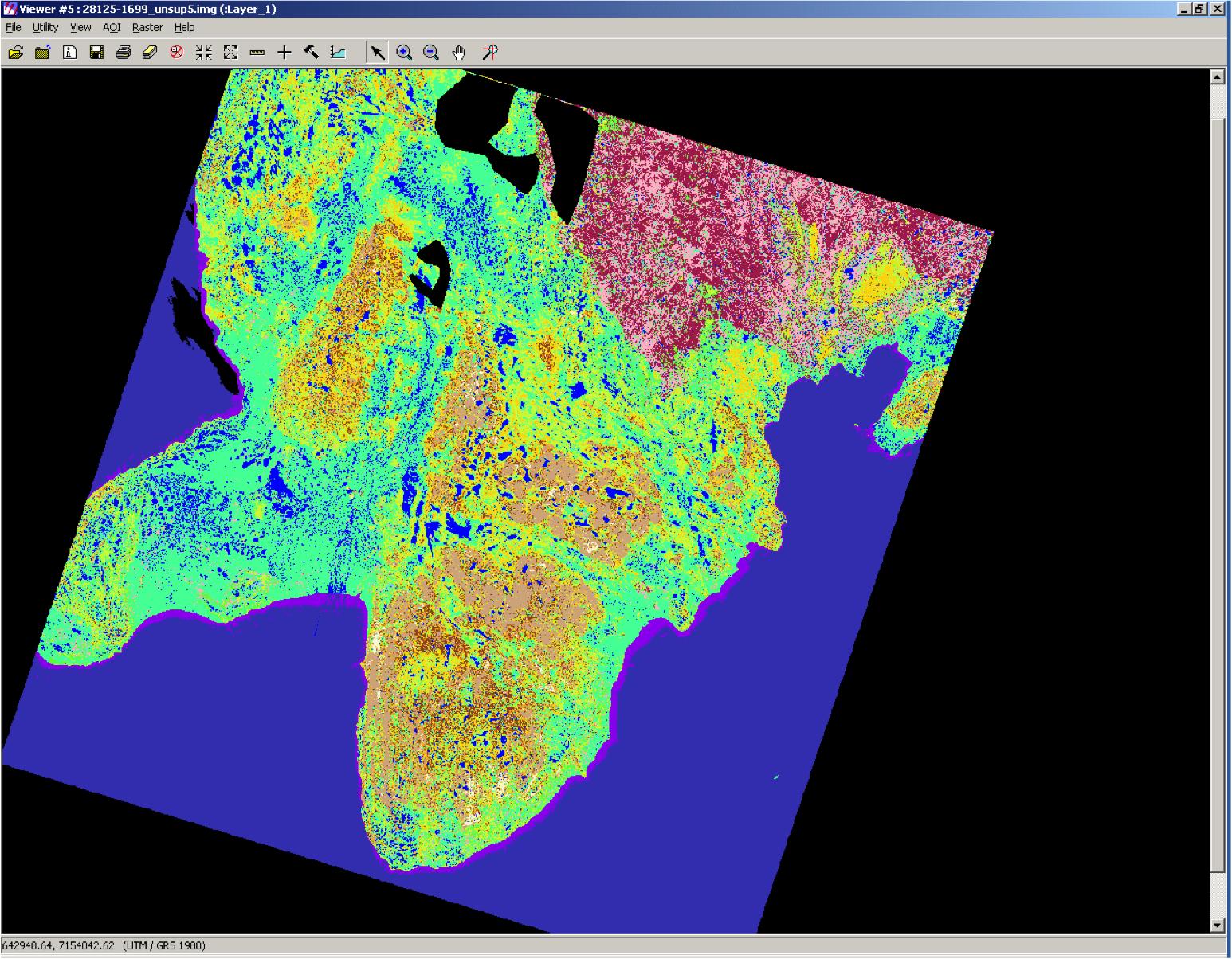 An interpreted map of the same area. Each color represents a different level of desirability for Red Knots.