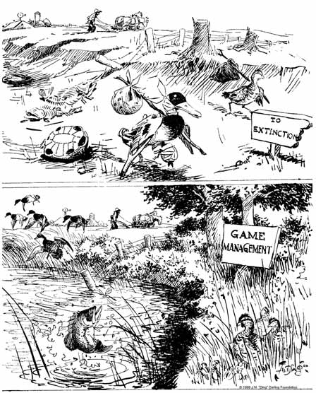 The collapse of huntable populations of game animals, deer, turkey, and especially waterfowl, slowly fueled public outrage. Even as the Great Depression hobbled the nation’s economy, activists like Ding Darling, a famous political cartoonist ( his cartoon is the featured image above), helped President Delano Roosevelt rally the public and Congress.