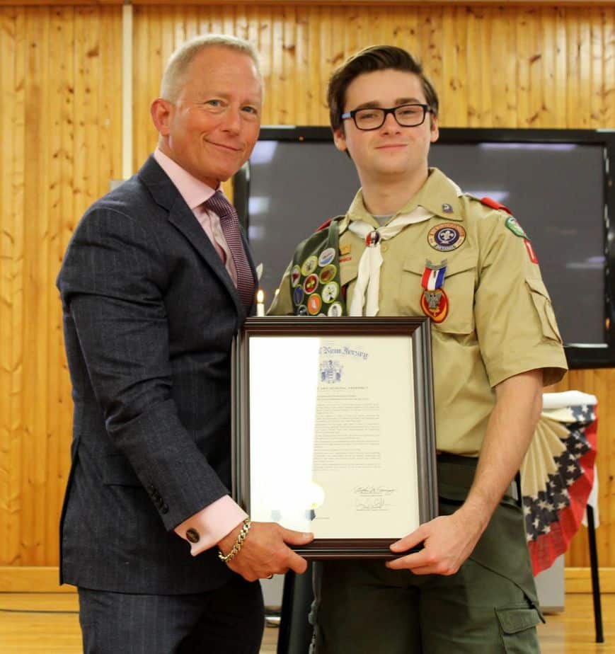 Republican US Congressmen Jeff Van Drew ( as a democratic state Senator) presenting an award to the Boy Scouts of America