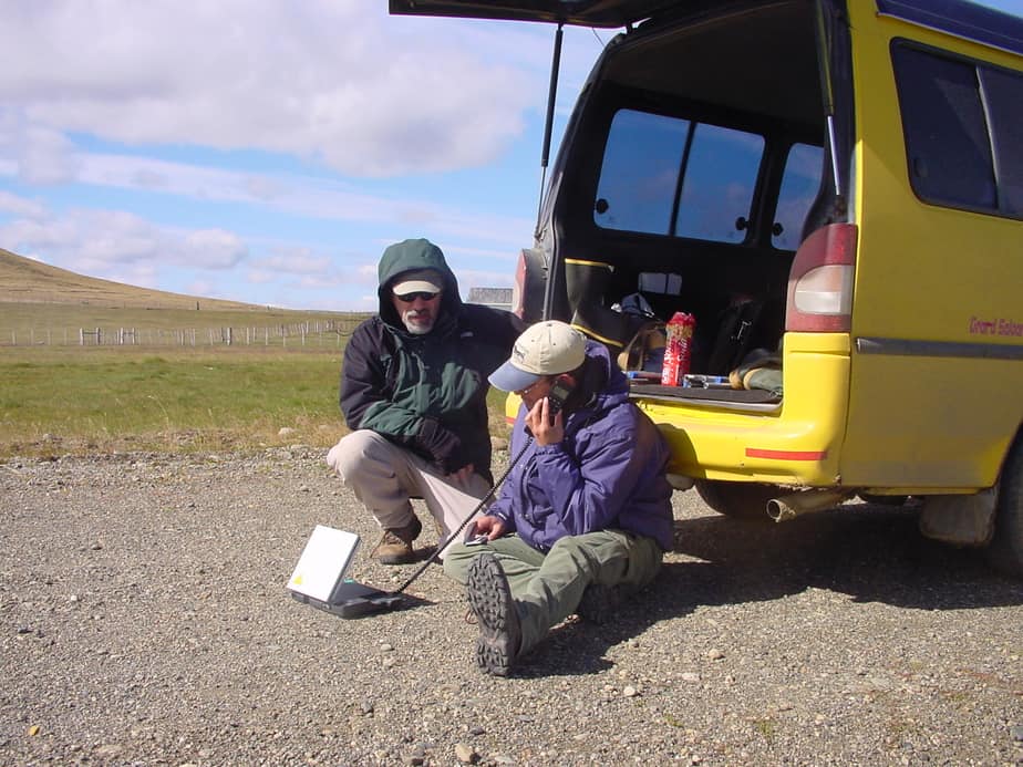 Our first need, however, was to get onto the bayshore of Bahia Lomas. With Ricardo as our lead, Ken, Rick and I sought out the owner of the access road. We quickly lost our way, but with the help of an ENAP employee, we found the gated drive of the Estancia. ENAP is the national oil company, with pumps and facilities scattered throughout the landscape. The ENAP employee explained to us that the new landowner has gated many of the roads of his growing estancia, presumably in reaction to ENAP employees. With some trepidation, Ricardo explained our circumstance to the farm manager and to our surprise we received permission. We needed a key however, and for that would have to wait. In the mean time, we learned of a way around the ditch.