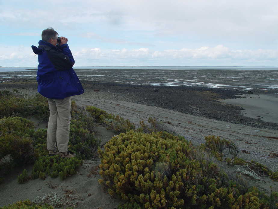 We left Jorge, Guy and Ken for our 10-hour round trip to Rio Grande, Argentina to retrieve Allan Baker’s cannon netting equipment and Luis Benegas. Luis stores the equipment at the Rio Grande Museum, where he is the Director. While we made our way through the golden pampas of Tierra del Fuego, the rest of team labored to make camp, erect sleep tents create a cooking area and build latrines. They even found time to do an early scan for birds!