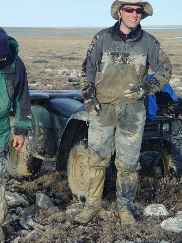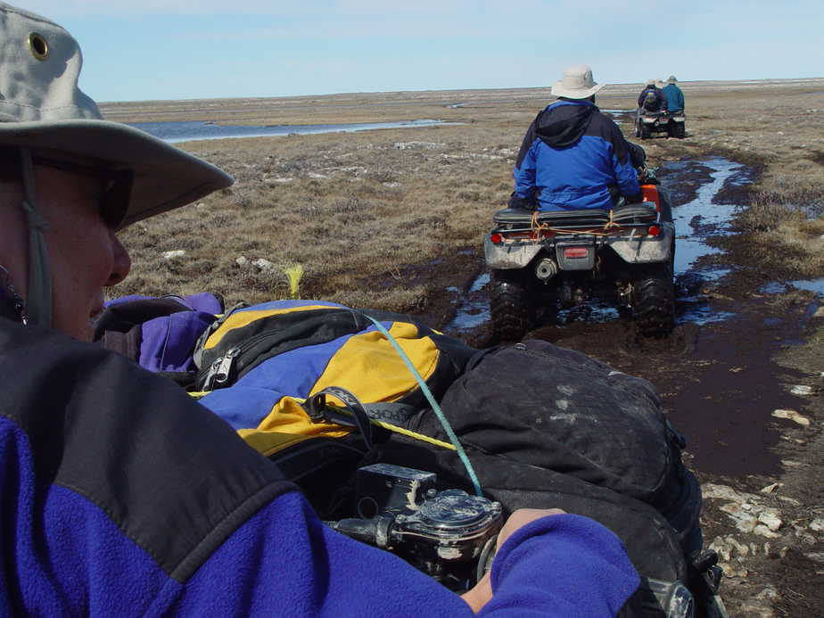 On our way back to camp, however, we met Pete who had to leave Humphrey and Steve behind to get through some of the worst mud boil we have ever encountered. Mud boils form through cracks in the permafrost, where mud literally bubbles up from below. Mud boils are the bane of field trips, whether on ATV or foot. Usually they percolate rock which cluster at the edge in a ring around the boil. They are generally soft but not so soft to stop an ATV. But, this mud was alive and well hidden at the edge of the wetlands.