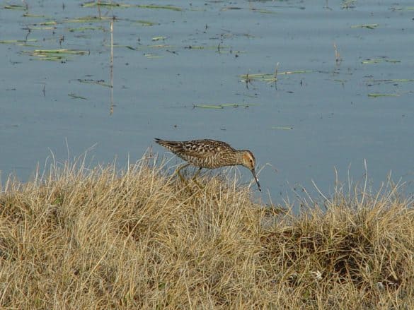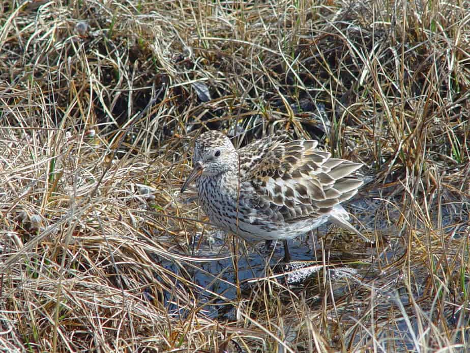 With the sun shining brightly we finally retired to our tent homes at about 2:00 am. We established camp next to an unnamed lake in low and mostly vegetated tundra, characteristically unsuitable for red knots, but a productive habitat for nearly all the other shorebirds in the central Arctic. Within a day, Mark, Rodger and Steve had ferreted out the nests of semipalmated sandpiper, white-rumped sandpiper, pectoral sandpiper, Baird’s sandpiper, ruddy turnstone, stilt sandpiper, red phalarope, golden plover, black-bellied plover, glaucous gull, Sabine’s gull, tundra swan, snow goose, Canada geese, white fronted geese, king eiders, long-tailed duck, pacific loon, red throated loon, snow bunting, lapland longspur, and horned lark. Within a few days we would see arctic tern, snowy owl, white-fronted goose, peregrine falcon, yellow billed loon, willow and rock ptarmigan, long-tailed jaegers. We saw only a few caribou and several arctic foxes.