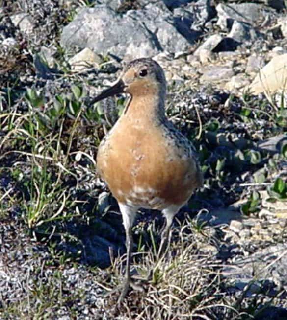 It got better. Humphrey and I moved approximately 1 km north while Mandy and Mark tried to find the calling bird. From our northern vantage we could see just how the knot habitat extended in nearly all directions. It was all very similar to Southampton Island. Then we heard a knot calling its territorial call, then another called and soon we could see two birds together. Before the two birds split apart, we heard a third bird calling from an entirely different area. We felt like we had found what we had sought, a good place to study knots. We spent as much time as we could following up on the birds, but the lateness of the day forced us to return to base camp.