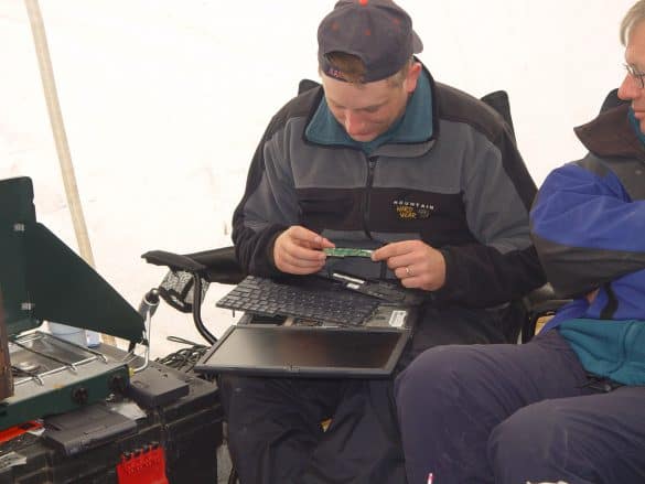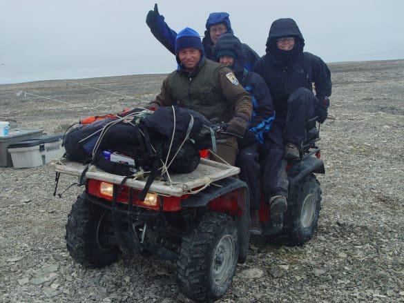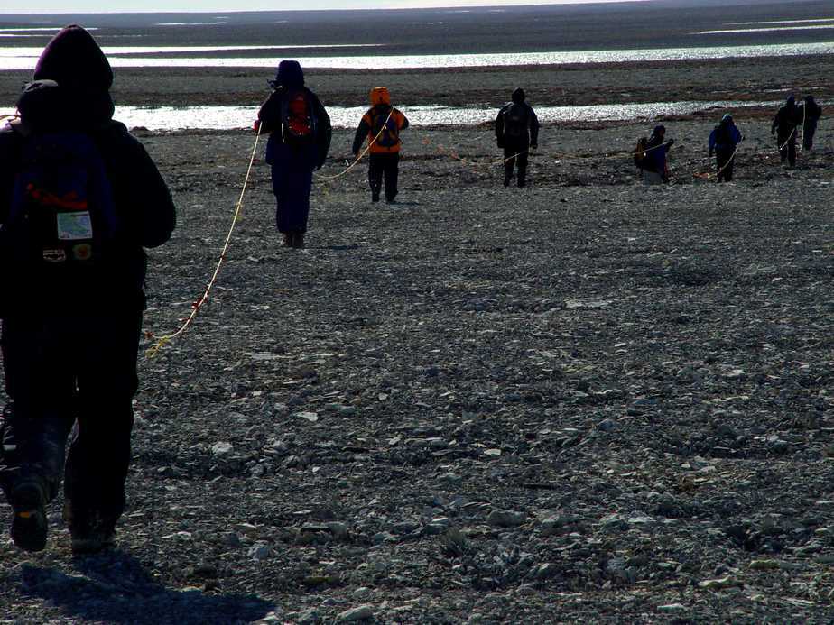 In each of our five years of Arctic fieldwork we have encountered a critical problem that elsewhere would be minor. The first year we took insufficient food, a major difficulty when a plane drops you off and doesn’t return for 9 days. Two years ago we forgot oil for the generator and ATV, which made them unusable when the oil ran low. This year we forgot a critical cable that prevented us from sending reports from the computer to the satellite phone. Pete tried making an RS 232 cable using wires and plugs from the GPS units and a male plug from a dismantled computer. Unfortunately, we couldn’t jerry rig a replacement cable and now hope to obtain ours when we begin the next leg of the trip.