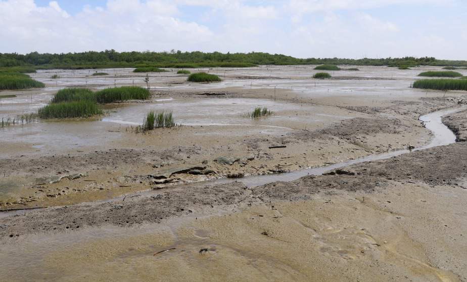 A newly flooded wetland that floods every day but for longer periods than crab flats. These wetlands were located on Lombo Branco Island.