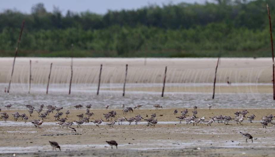 Red knots, sanderlings, short-billed dowitchers and other shorebird forage closer to the mouth of the sam inter-tidal estuary closer on Morro Branco. Here the tidal area is unflooded for short periods but productive for marine invertebarate like clams and worms.