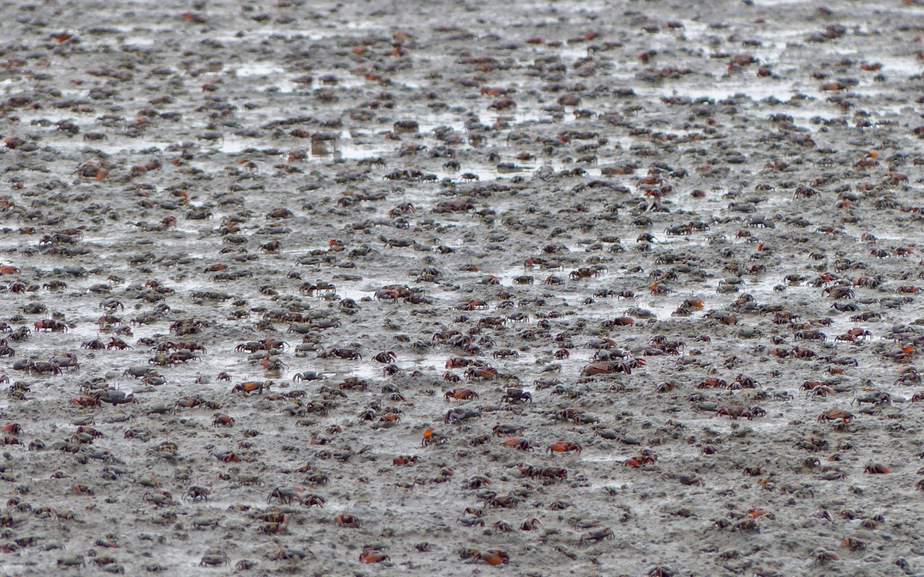 Fiddler Crabs display and feed on an intertidal mud flat called a Crab Flat. It flood only for short period because it is relatively high in eleavation.