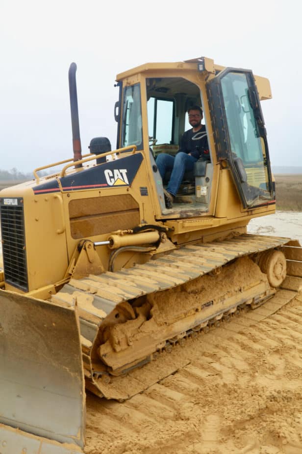 Phil Heun, a third generation heavy equipment operator pushes sand on Pierce’s Point NJ to fix dune breaches