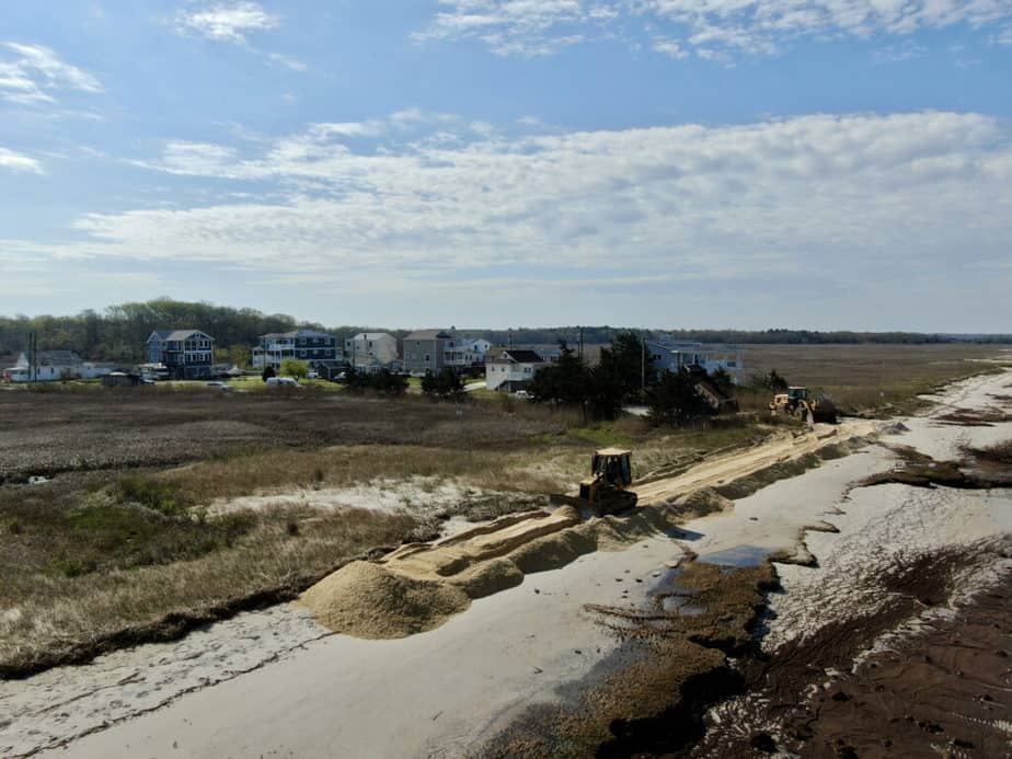 Our project is a bandaid on this coastal wound. The last three years have opened up gaps in the beach, accelerating the beach movement towards its final collapse into the tidal creek that runs along the inland side. Our reconstruction of the damaged sand dunes will close those gaps. This will also prevent horseshoe crabs from flowing into the gaps and dying when they can get back out. But our work is a stopgap meant to stop the damage.