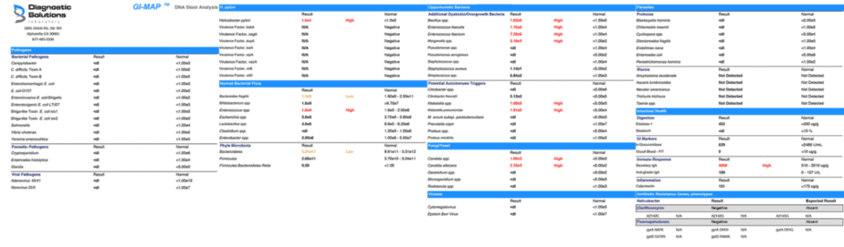 My cousin, Holly Niles, an integrative nutritionist, found that the cause came from inside my body. With a sort of inverted remote sensing of my gut called a GI map by Diagnostic Solutions. The test provides a list of the many species of bacterial flora in my digestive system and measures numbers with normal ranges. The test also provides information on potential opportunistic bacteria, viruses, parasites, fungi that flourish within an unbalanced system.