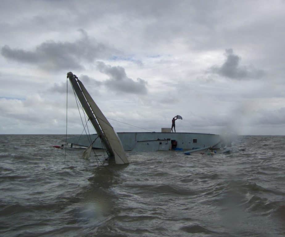 I say fateful because, in the first year, our rented 50 ft foot catamaran meant to ferry us to the many inaccessible survey sites sunk in 55 feet of water 8 miles at sea just as we began the journey. At the moment of truth, when the Captain ran out of the cabin yelling ” this boat is sinking” but in Portuguese, leaving us curious and puzzled, at that moment we learned that one of the two liferafts wouldn’t inflate. At the same time, the single outboard bobbed with transom of the deflated zodiac, both sodden and useless.