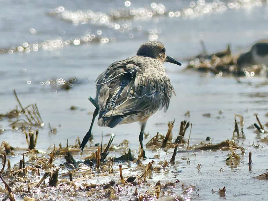 The situation improved today. Megan Kolk, one of our resighters this year, found a flock of 2000 with new flag codes at Moores beach. The morning recce showed the lowest numbers of the previous four days. Less than a thousand reeds to pierces. Megan’s discovery may point to more birds.